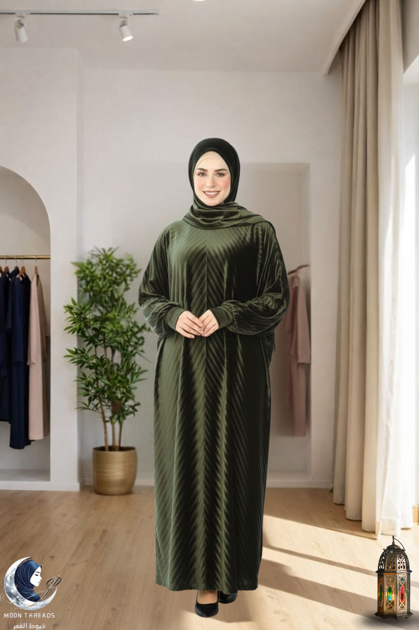 إسدال صلاة قطيفة ناعم بخامة شتوية دافئة ومريحة بتصميم واسع وأنيق مناسب للصلاة والخروج.