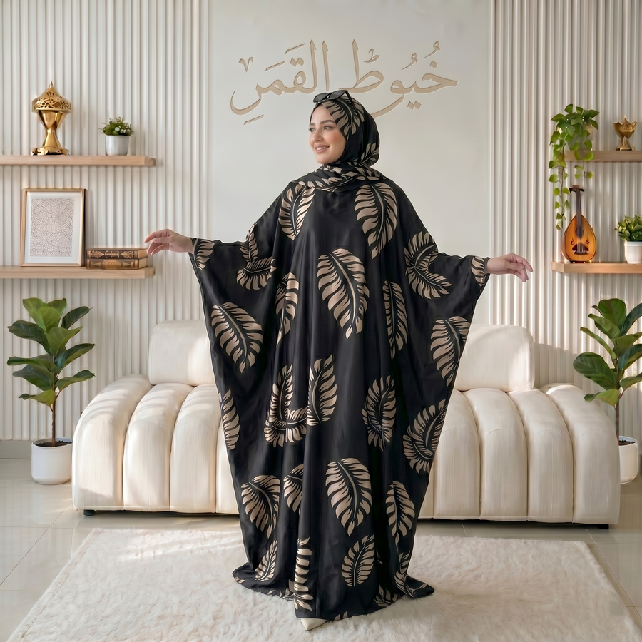 إسدال ستان تركي أرماني بتصميم راقي ونقشة أوراق مميزة بتدي إحساس بالفخامة والبساطة في نفس الوقت ✨