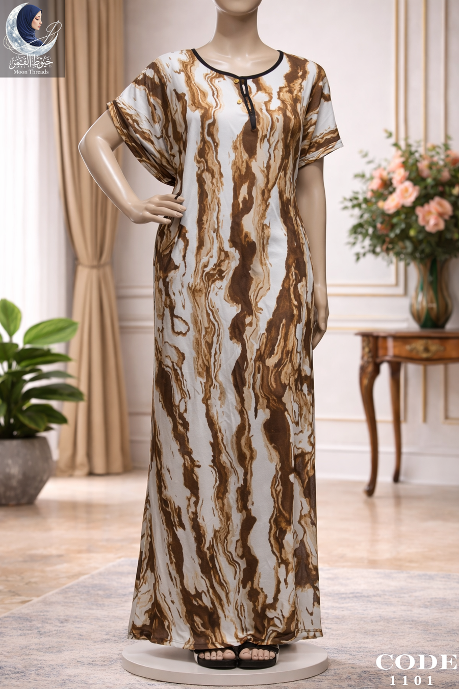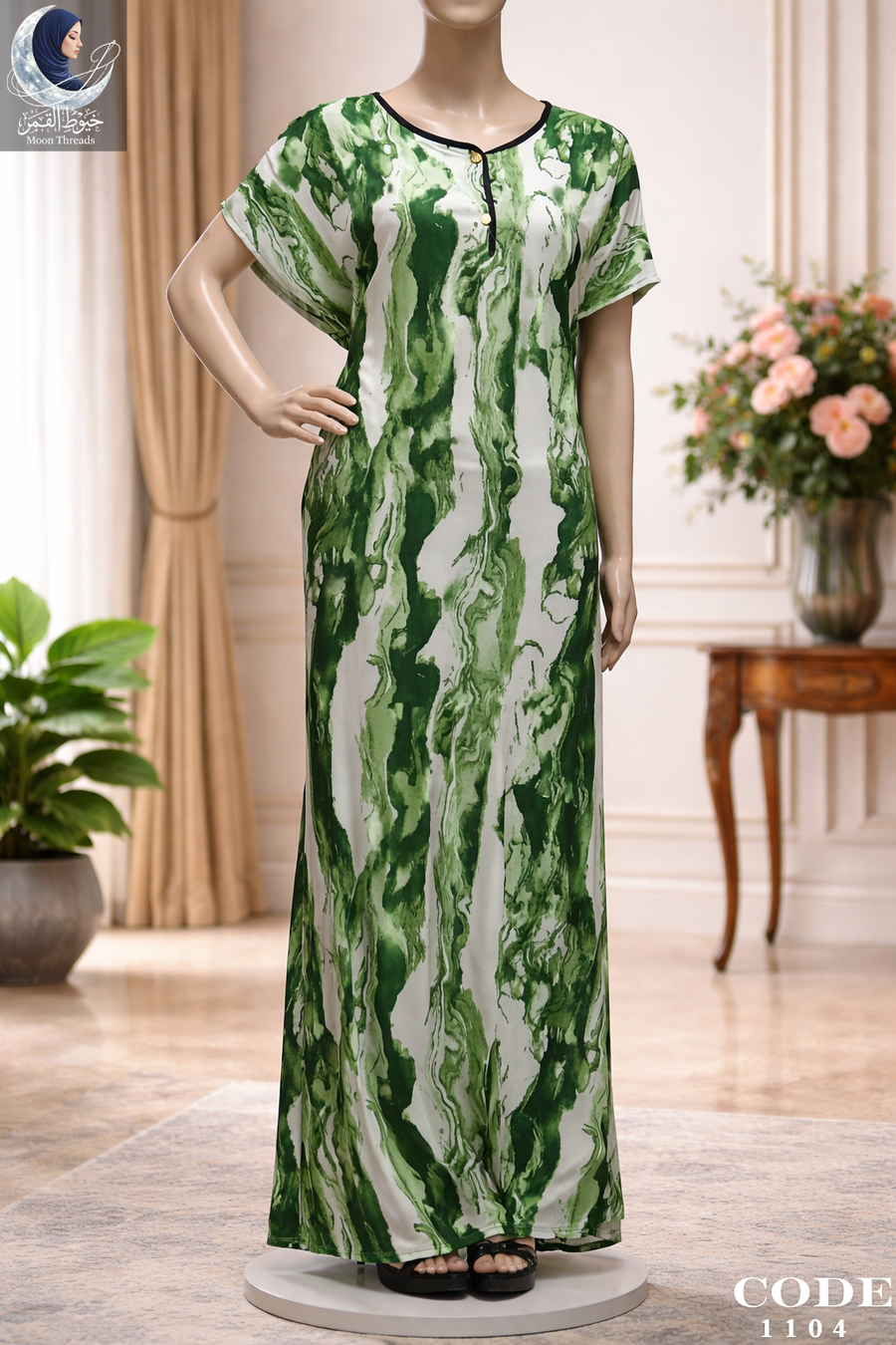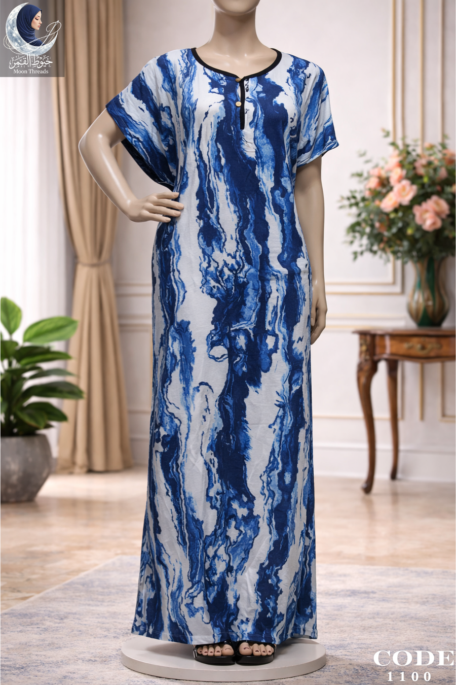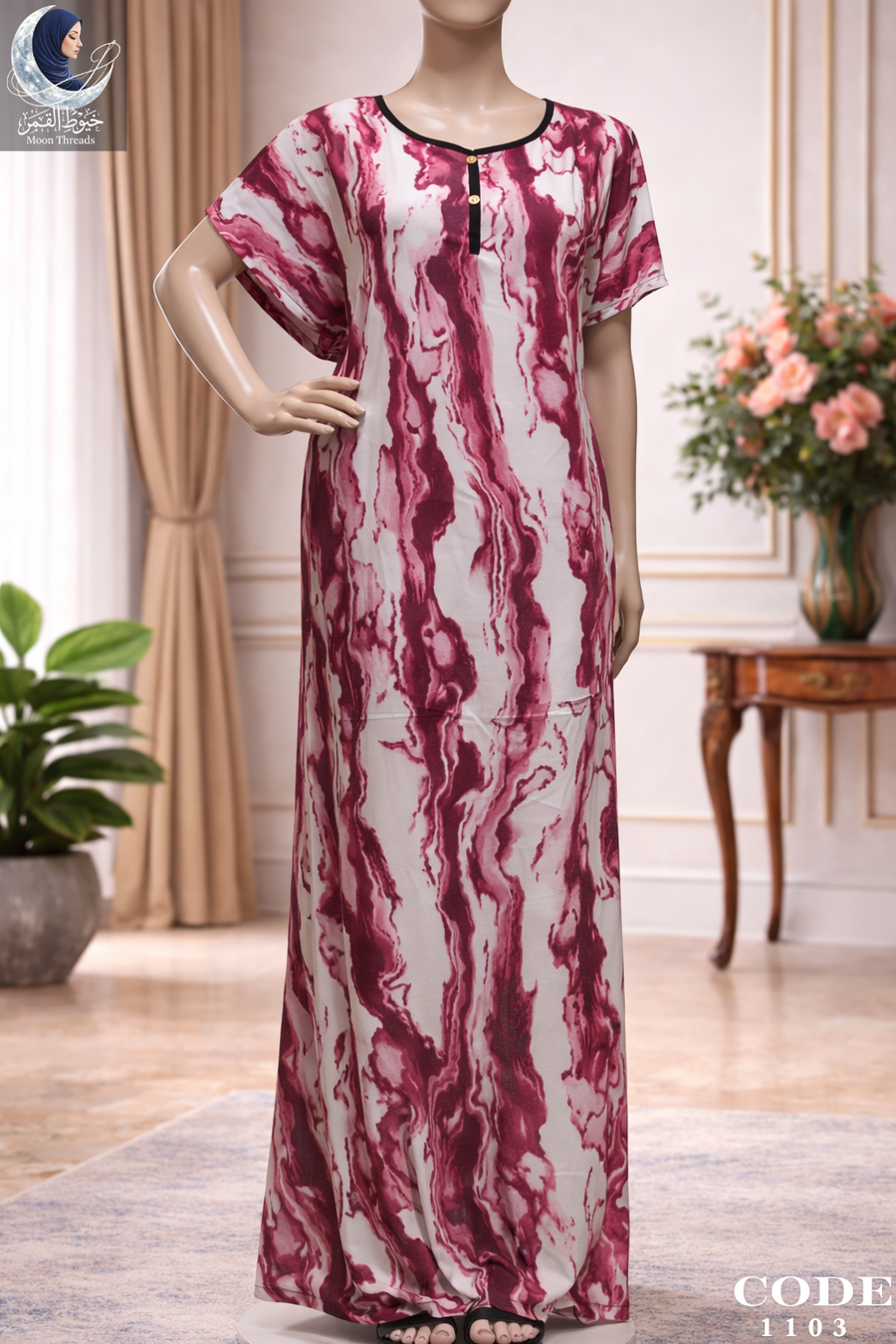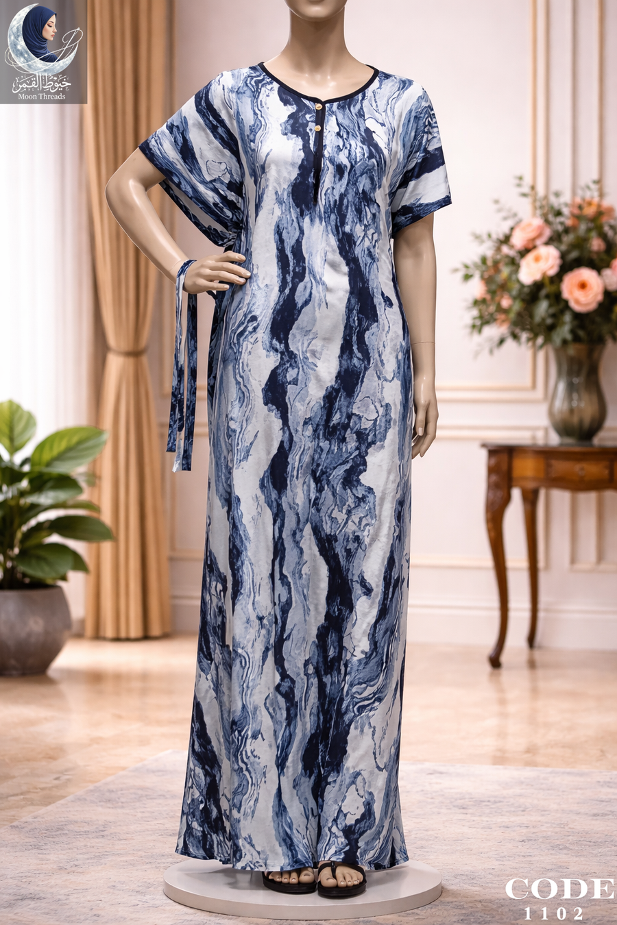 استمتعي بإطلالة مريحة وجذابة مع هذا الدريس البيتي من Moon Thread. يتميز بتصميمه الانسيابي وألوانه المتداخلة التي تمنحك شعوراً بالانتعاش والبهجة في منزلك.