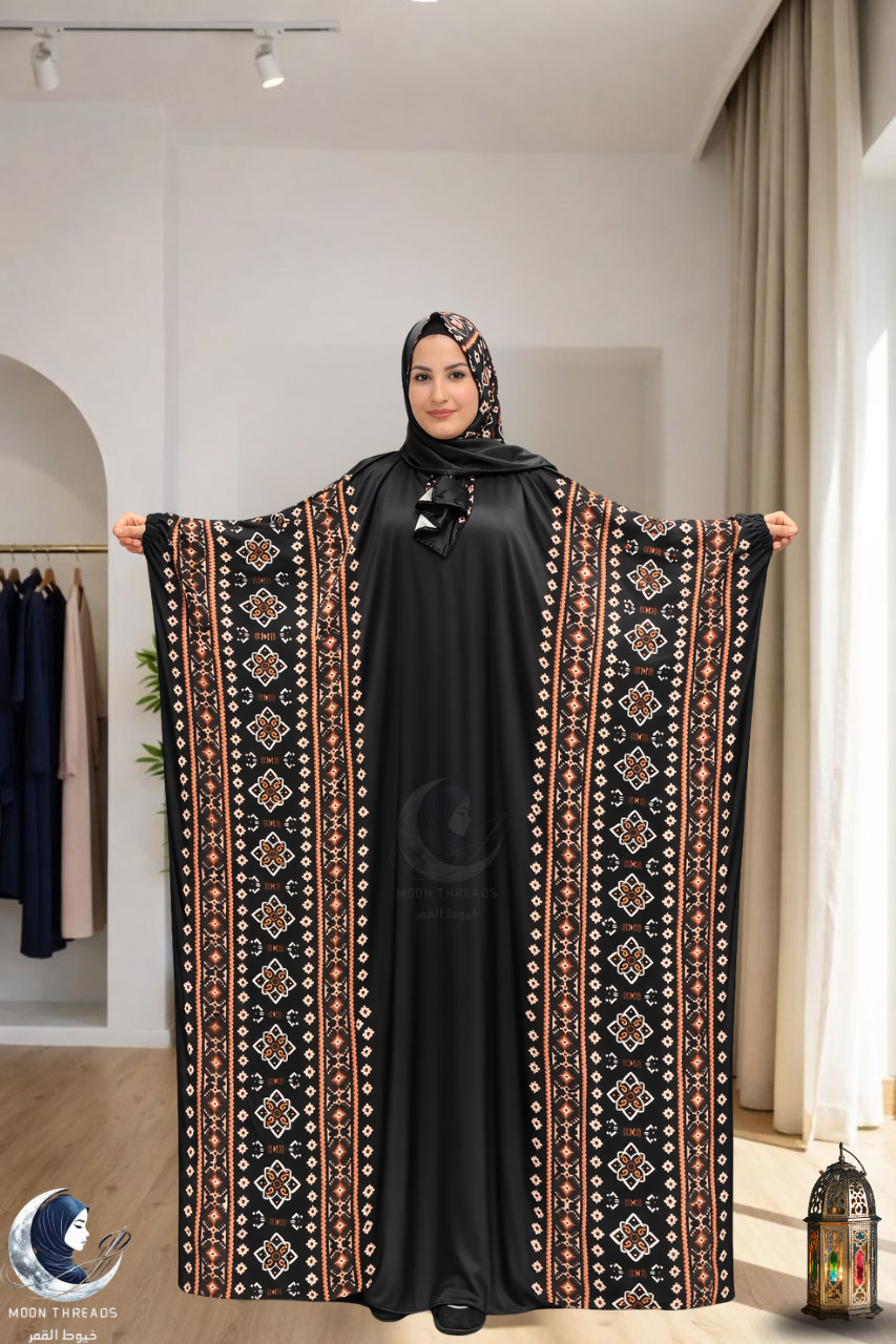 اسدال صلاة بخامة ستان تركي ناعم ومريح بتصميم واسع ونقشة أنيقة تناسب الاستخدام اليومي والصلاة.
